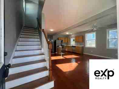 This beautifully renovated 2-bedroom, 1.5-bath apartment offers two levels of living space with the comfort and privacy of a single-home feel. Featuring hardwood floors on the main level, carpeted bedrooms upstairs, a modern kitchen with stainless steel appliances, and a private deck with open views, this home is ideal for those seeking both space and convenience. In-unit laundry, two designated parking spots, and a private storage shed are included in the rent.