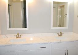Solid-surface countertops, stainless-steel appliances, and modern finishes