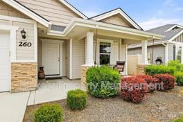 Darling single-level home offering 3 bedrooms, 2 full baths, and a clean, modern feel throughout. Vaulted ceilings and an open layout create a light and airy atmosphere. The kitchen features granite countertops, a full tile backsplash, a center island, and stainless steel appliances.
