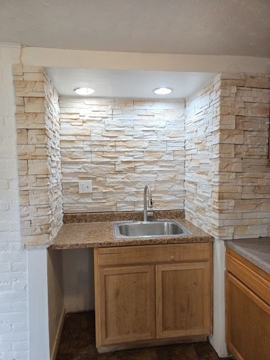 Features & Updates: Renovated kitchen with updated cabinets, countertops, and backsplash. Refrigerator and stove included. Accent stone walls with modern lighting. Spacious bedroom with closet space. Clean, refreshed bathroom with updated fixtures. Freshly painted interior with brand new flooring throughout. Private rear porch and backyard for outdoor enjoyment. Washer and dryer hookups are available in the basement.