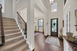 Fabulous two-story home featuring 5 bedrooms and 4 full bathrooms, designed with elegance and comfort in mind. This charming residence boasts a beautiful brick and stone exterior, upgraded wood flooring, and a spacious open layout. The gourmet kitchen is equipped with granite countertops and GE stainless steel appliances, seamlessly flowing into the family room with a striking floor-to-ceiling stone fireplace. Additional highlights include a private study, game room, media room, and a spacious covered outdoor patio perfect for entertaining. The third/tandem garage has been thoughtfully converted into a secondary kitchen, adding extra functionality to this exceptional home.