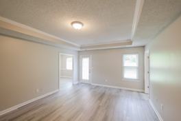 Step inside to find fresh, neutral interiors and an inviting open-concept layout. The living room features elegant tray ceilings and LVP flooring that extends throughout, creating a cohesive flow between spaces. The adjacent dining area and kitchen offer plenty of cabinet storage, double sinks, and access to the laundry room and backyard patio, a great spot for morning coffee or evening relaxation.