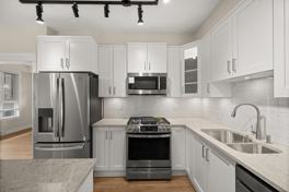 This unit features a gourmet kitchen with high-end stainless appliances, 5 burner gas cooktop, quartz counter tops, island and plenty of cupboard storage. Your luxury feel does not stop at the kitchen, bathrooms feature heated floors, every room with over sized windows letting in plenty of natural light, 9' ceilings to make the space feel larger and best of all A/C!