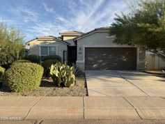 Spacious and modern, this 1,996 sq ft single-story home offers 5 bedrooms and 3 full baths with a well-designed open layout. The kitchen features a breakfast bar, ample cabinetry, and modern appliances including refrigerator, oven, microwave, and dishwasher. The bright living area is enhanced by tile flooring, ceiling fans, and elegant chandeliers throughout. The primary suite includes a walk-in closet and ensuite bath, with flexible additional bedrooms for guests or office space. Enjoy a dedicated laundry room, enclosed front courtyard, extended backyard patio, and two-car garage. Community amenities include pickleball, parks, lake, trails, and more.