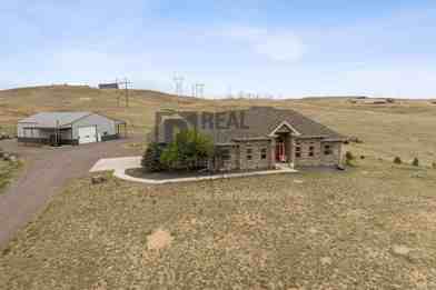 Imagine coming home to this! Serene, acreage living meets absolute convenience. Enjoy breathtaking, panoramic sunset views over the reservoir, all while being just 10 minutes from town. This spacious, high-end main-level home is truly move-in ready, featuring all-new, never-lived-in carpet and a fresh, full repaint—including the kitchen cabinets! And for the hobbyist or collector: don't forget the incredible 40 x 60 pole barn!