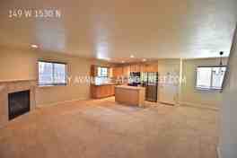 149 W 1530 N is a 4 bedroom, 3 bathrooms apartment for rent. It is located in Tooele. It has apartment amenities including fireplace, ceiling fan, microwave, on-site laundry, outdoor space, carpet, walk-in closets, in-unit laundry, air conditioning, and dishwasher. Cats and dogs are allowed, making it a pet-friendly apartment.