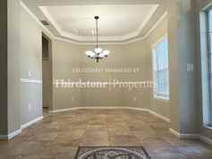 Welcome home to this beautiful 3 bedroom, 2 bath residence featuring an impressive 1,674 sq. ft. of living space and a two-car garage. This thoughtfully designed home showcases unique features and upgrades throughout, beginning with a welcoming mosaic tile design at the front entryway. Step inside to find elegant light fixtures, ceiling fans, and an abundance of natural Florida sunlight streaming through the windows, many of which include privacy blinds. The expansive kitchen offers generous storage within the warm wooden cabinetry, complemented by bar seating, stainless steel appliances, and an over-the-range microwave and dishwasher. The inviting living room opens through sliding glass doors to a private fenced backyard and patio, perfect for relaxing or entertaining outdoors. Retreat to the primary bedroom, which features a beautifully crafted elevated ceiling design and an ensuite bathroom complete with a circular soaking tub, separate standing shower, double-sink vanity, and private water closet. The guest bathroom includes a tiled shower/tub combination for added convenience. Additional highlights include a dedicated laundry room with washer and dryer hookups and built-in storage racks. The residents are responsible for all utilities and lawn care. Pets are welcome, breed and weight restrictions may apply. Application fee $55 per person 18 and over. Lease Term: 12 months.