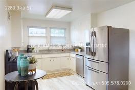 Beautiful and meticulously maintained, this three-bedroom, one-bathroom home sits on a quiet cul-de-sac, while conveniently close to everything Los Alamos has to offer. The living and dining rooms are bathed in abundant natural light that showcases the striking natural wood floors. The kitchen is equipped with upgraded countertops, newer appliances, and wood-look tile flooring. Just off the kitchen, there’s a bonus room offering privacy and flexible space that could be a third bedroom, office, craft room, or second living area. The two original bedrooms also boast natural wood floors and plenty of natural light. The bathroom has been stylishly updated. Throughout the home, you'll find double-pane windows—most with Hunter Douglas blinds—and updated doors, ensuring both comfort and energy efficiency. Ample storage is available throughout the house. Outside is a big, fenced backyard, complete with a large gate to allow access for RV parking. The patio is an ideal space for relaxing or entertaining, and a spacious shed offers outdoor storage. Located near shopping, museums, restaurants, and parks, this home is perfectly situated to enjoy all the best of Los Alamos.