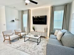 Resort style living in this 3 bedroom 2.5 bathroom town home, fully furnished. Single car garage. Close to Champions Gate Downtown, with shops restaurants and easy access to I4. Amenities, resort style pool, fitness center, on site restaurant, ice cream pallor, coffee shop. mini golf. The rent includes lawn care.