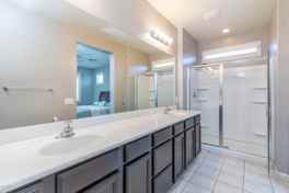 Retreat to the tranquil main suite featuring a generous walk-in closet, dual sink vanity, and an oversized walk-in tiled shower that feels like a spa escape.