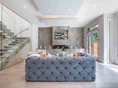 Discover a masterfully crafted home, ideal for both intimate family living and hosting guests. Situated in the coveted Newtonbrook East area, this modern 4+1 bedroom residence show cases truly opulent amenities. The striking Indian Precast facade, enhanced by expert landscaping, bespoke interlock, and beautiful evening lights, makes an immediate impression. Enter into a majestic foyer and office with soaring 13' ceilings. A dramatic open-plan concept flows throughout the entire home. The spacious interior features recessed ceilings with concealed lighting, custom chandeliers, massive windows, sleek linear fireplaces, and brass details one very level, radiating pure elegance. A showcase wine cellar and tailored hardwood flooring with brass inlays add to the charm. The gourmet kitchen is a culinary paradise, fitted with premium integrated appliances. The family room, finished with Italian porcelain, recessed ceilings, and pot lights, opens to a large wooden deck overlooking the yard, perfect for gatherings. Climb the specially designed staircase with its glass banister, huge skylight, and large window that fills the space with sunlight. Find the graceful, south-oriented primary suite, complete with a lavish six-piece ensuite, fireplace, and a walk-in closet brightened by a skylight. Every other bedroom includes a private ensuite with Italian porcelain walls and warm floors. The spectacular lower level has towering ceilings, heated porcelain floors, and a beautiful recreation room with a wet bar, all lit by sunshine from large windows. Two separate walk-up exits and an extra nanny suite with its own closet and heated ensuite complete this level. The huge, landscaped backyard is enclosed by tall privacy fencing, creating a peaceful sanctuary. Close to excellent schools, stores, and restaurants. This property represents the pinnacle of luxury, comfort, and prime location.