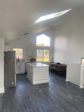3 bedroom 3 bathroom house. Full renovation completed this year, inside and out. New kitchen and bathrooms. Kitchen has large island, stainless steel appliances, farm house sink and quartz countertops. Beautiful fire place, two living rooms, perfect for entertaining. Main floor laundry facilities. Unfinished basement great for office, gym or storage. Basement has two egress windows which provide plenty of sunlight. Back yard backs up to a green belt and has a nice deck for entertaining with privacy. Two car attached garage with south facing driveway. Laminate flooring throughout.