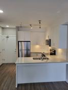 – White cabinets and drawers with soft-close technology in both the kitchen and bathroom