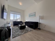 This top-floor, almost-new FURNISHED 2 Bed, 2 Bath home, built by award-winning developer Zenterra, boasts a modern design and luxurious features. With an open layout, soaring ceilings, and large windows that fill the space with natural light, the home feels spacious and bright. The kitchen is perfect for those who love to cook, featuring quartz countertops and stainless steel appliances, including a gas stove. Additional perks include a parking spot and a storage locker. Nestled near top-rated schools, recreational facilities, scenic trails, and easily accessible from Hwy 1, the home is surrounded by new shops and restaurants, offering a convenient and vibrant lifestyle in a growing community.