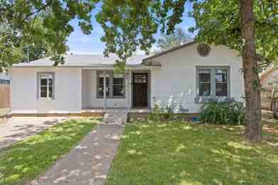 Just blocks from Fredericksburg's Main Street, this classic bungalow is located on a quiet block convenient to all that Fredericksburg has to offer. Set on a wide, charming street, this 2-bedroom, 1-bathroom home features an updated kitchen with a gas range, designer tile and fixtures in the bathroom, and a spacious second living room. Plus, there is an in-home laundry room! Outside, you will find several large shade trees, front and rear covered porches, a large and level yard, and a storage building with a covered parking area accessed either from the back yard or the alley to the rear of the home.