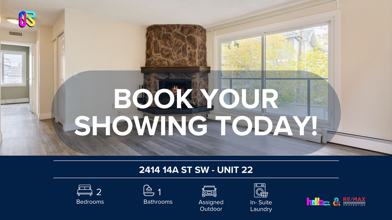 Modern 2 Beds, 1 Baths Apartment/Condo | 1 Cat Allowed | BUILDING AGE RESTRICTED: OCCUPANTS MUST BE 8+Welcome to your new home at 2414 14A Street Southwest - Unit 22 — a modern and well-maintained 2 beds / 1 baths / Apartment/Condo offering comfort, space, and convenience. Ideally located close to shopping, schools, parks, and transit.SHOWINGS: Conducted in an open-house format — book your appointment today! https showmojo com 79c3e9f0b2 lPrices, availability, and promotions are subject to change without notice. VIDEO TOUR: https youtu be 0eIIZONzuuQ PROPERTY DETAILS: - Furnished or Unfurnished: Unfurnished - Pets: 1 Cat Allowed. $50 Monthly Fee - Smoking: Non- Smoking - Parking: Assigned Outdoor - Storage Included: No - Laundry: In- Suite Laundry - Management Type: Full Management - Lease Term: Long Term - Condo Building Bylaw - Residents under the age of 8 years old are prohibited UNIT FEATURES: - Living Space: Open-concept living room layout, perfect for relaxing or entertaining - Kitchen: Sleek and modern kitchen with all appliances for a contemporary look with plenty cabinet storage to keep everything organized - Dining Space: Open-concept design flowing into the living space, perfect for entertaining - Bedrooms: 2 Bedrooms featuring ample storage for clothing and accessories - Window Coverings: Includes window coverings for privacy and light control UTILITIES: - Utilities Included: Water, Natural Gas LOCATION HIGHLIGHTS: - Outdoor Living: Nearby Parks, Pathways, Greenspaces - Transit & Access: Transit Lines / Major Roads Nearby - Family Friendly: Close to Schools, Childcare, Rec Centres - Local Conveniences: Groceries, Shops, Restaurants, Services Nearby Don't wait — properties like this don't last long.
