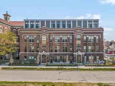 Welcome to Detroit's hidden gem- The Saint Charles Residences! Enjoy century old architecture with the advantage of a brand new 15 year NEZ tax abatement! Unit #205 is a North East facing corner unit with extraordinary views of historic Saint Charles Church! This two-bedroom & two bath space offers concrete & terrazzo flooring throughout, large windows w/ tons of natural light and soaring 15 ft. ceilings! It has an open concept kitchen and living layout. The kitchen features bright white quartz countertops, marble backsplash, Kraftmaid cabinets, Bosch stainless appliances and Grohe fixtures. In-unit washer/dryer and assigned parking! The common areas on each floor display specially curated art collections on each floor, adding a home-like feel as you leave and enter our space!