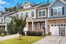 Immaculately well kept end unity townhome in Parkside at Bella Casa with first floor master! Gourmet chef's kitchen with SS appliances, gas stove, soft close drawers, eat in bar, and oversized walk-in pantry. Hardwoods throughout family dining and kitchen. Beautiful vaulted ceilings in both master and family room. Upstairs loft with three additional bedrooms. Outdoor storage and recently fenced in patio for extra privacy. Walking distance to Apex Friendship schools.