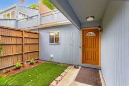 Step through the charming private courtyard and into a light, bright home featuring newer LVP flooring throughout (no carpet!), updated tile in the kitchen and bath, and fresh paint. The vaulted ceilings and large skylight fill the home with natural light, while convenient sensor lighting adds a modern touch.