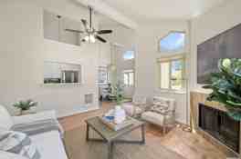 Newly updated condo that is a must see. Light and bright, the unit has been freshly painted and has vinyl plank wood-look flooring. The kitchen has been fully updated with new cabinets, quartz counter tops, tiled back splash, updated flooring, new appliances, light fixtures and upgraded faucet. The living area has ceiling fan and a fireplace with a beautiful tile surround and hearth. The spa like primary bath has new tile surround, new flooring, vanity with quartz counter top, new sink and faucet, upgraded light fixture, mirror and towel bar. Includes a large storage cabinet and stackable washer/dryer. The bedroom has a ceiling fan and can accomodate a portable air conditioner. The exterior deck has plenty of room for a BBQ and entertaining and includes a storage closet. The community is gated with keyed or electronic entrance and there is secure underground parking. The community pool and clubhouse are easily accessible from this unit. Guest parking in front of gated parking garage (enter at driveway).