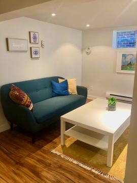 Cozy renovated, fully furnished, basement apartment with big windows and laundry right outside your door.