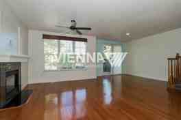 The spacious family room opens up to the beautiful kitchen with a breakfast bar, stainless steel appliances, granite counters and white cabinetry.