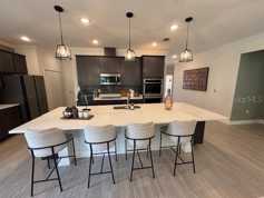 Rent a New Built! 3/2 with Den 1988 Sqft. Never been lived in! Builders model home with upgrades! Beautiful tile flooring throughout, rooms have beautiful carpeting, volume ceiling, crown molding, upgraded gourmet kitchen, stainless steel appliances, washer/ dryer, alarm system and much more. Live like you own!