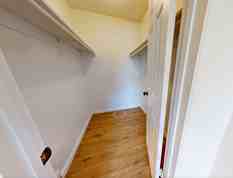 Upstairs, you'll find two bedrooms and a full bathroom. The primary bedroom includes a spacious walk-in closet with ample storage.