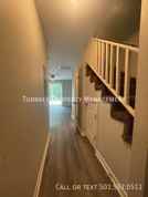 This Little Rock townhouse provides a thoughtfully designed two-story layout with a modern, inviting feel. The main living areas feature sleek grey wood-look flooring, while the bedrooms are finished with soft, plush carpet for added comfort. A ceiling fan and expansive sliding glass doors brighten the living room with abundant natural light.
