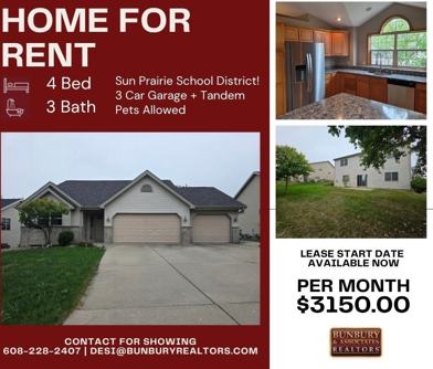 Available for rent, this split level home is cozy in a great location! 4 bedrooms, 3 full bathrooms. Private yard, spacious kitchen with granite countertops, finished basement and recreational bonus room. 3 car garage with tandem. Located in Weybridge, it's a quiet neighborhood to reside! Pets considered with extra fee. Must pass a background and credit check. Contact agent for showings!