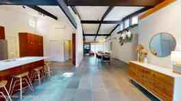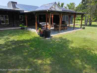 Tucked away on a sprawling, private 11 acre lot just minutes from downtown Hudson, this fully furnished modern retreat offers the perfect blend of style, space, and seclusion. Designed with clean architectural lines and mid-century flair, the home features soaring ceilings with exposed beams, large slate tile floors, and sun-drenched living spaces framed by oversized windows. The open-concept layout includes a chef's kitchen with custom cabinetry and a generous island, a sophisticated dining area crowned by a sparkling chandelier, and a cozy living room with a fireplace and built-in entertainment center. Multiple lounge areas offer panoramic views of the lush, wooded surroundings. In addition to the main home, a separate studio space provides endless possibilities, perfect for a home office, art studio, or guest suite. Outside, the expansive grounds include open lawn, mature trees, and a garden ideal for growing vegetables, herbs, or flowers. This one-of-a-kind property delivers elegance, comfort, and privacy just 2 hours from NYC. The home comes fully furnished (down to the linens and towels) and utilities are included, so it is truly turn-key!