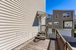 Main-floor features kitchen with modern appliances, dining area, outdoor balcony, and living room with gas fireplace. Large windows and sliding glass door on both east and west side of unit capture natural light throughout the day. Upstairs you’ll find a primary bedroom with ensuite bath, one additional bedroom and full bath. Lower level encompasses laundry area and extended garage w/ shelving for storage.