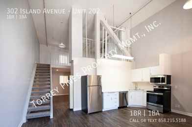 302 Island Ave #202, San Diego, CA is a 1 bedroom, 1 bathroom apartment for rent. It is located in the Marina neighborhood of San Diego. It has apartment amenities including assigned parking, and high ceilings. Cats are allowed, making it a pet-friendly apartment.