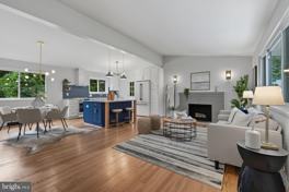 From the inviting front porch to the soaring cathedral ceilings and open-concept layout, this home is sure to impress. The brand-new, designer two-tone kitchen boasts a breakfast bar, floating shelves, a pantry cabinet, quartz countertops, a tile backsplash, and sleek matte white and gold appliances. Throughout the home, you'll find high-end finishes, including beautifully renovated bathrooms, elegant entertaining spaces, a cozy wood-burning fireplace, and preserved original hardwood floors. The main level features a spacious primary suite with a private bath, along with two additional bedrooms and a full hall bath. The lower level offers even more space with a generous rec room that opens to a screened porch, a fourth bedroom, and another tastefully updated full bath. Set on a quiet 1/4-acre lot bordering woods on two sides, the fully fenced yard includes a large storage shed, covered carport, and a unique corner location with added parking potential. Major upgrades include a new roof, windows, electrical panel, and more-just move in and enjoy! Conveniently located just 0.3 miles to the bus stop and 2.6 miles to the Metro.