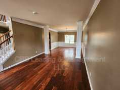 Upon entry, you're welcomed into a dramatic two-story foyer that sets the tone for the home's grand interior. The main level includes a formal dining room and a separate living area, with an open-concept kitchen that flows into the family room. The kitchen is equipped with stainless steel appliances and a center island, perfect for entertaining or family gatherings.