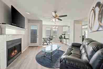 Beautifully updated and furnished 1-bedroom, 1-bath condo in prime Arlington location. Open layout and cozy fireplace. Kitchen features granite countertops, stainless steel appliances, and white cabinets. Bedroom offers ample closet space; bath includes walk-in shower and upgraded vanity. In-unit washer/dryer, fresh paint, luxury vinyl flooring, and modern lighting. Private covered patio plus easy access to highways, shopping, dining, and entertainment. Move-in ready!