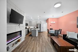 Step inside and be greeted by an open floor plan that seamlessly connects the living, dining, and kitchen areas. In addition, living room includes a built-in fireplace, perfect for year-round use. The modern kitchen is equipped with top-notch appliances including a gas stove top, refrigerator, dishwasher, and microwave, making meal prep a breeze. Enjoy the convenience of a washer and dryer right at home, along with a garbage disposal for easy clean-up.