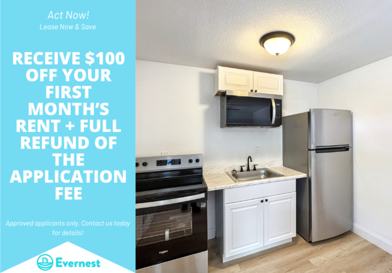 Apply and move in to receive $100 off your first month’s rent and get your application fee refunded once you’re approved.