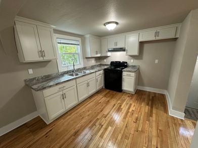 This renovated single family rent to own home has 2 bedrooms, 1 bathroom, and a driveway. Features include hardwood floors, "low maintenance" exterior, wood accent wall, and new kitchen cabinets/counters. Remodeled bathroom with tiled tub surround. New roof, mechanicals, insulation and windows. Good size storage areas in basement and attic.