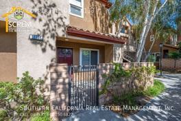 Beautifully updated two-bedroom townhouse with attached bathroom located in a gated community in Saugus. A private courtyard welcomes you into the spacious living room and dining area, featuring wood-look tile flooring, recessed lighting, electric window shades, and a cozy fireplace. The kitchen offers a charming breakfast bar, garden window, and stainless steel appliances, including a refrigerator, gas stove, single oven, microwave, and dishwasher. A convenient half bath is located downstairs. Upstairs, the primary bedroom features plush carpet, vaulted ceilings, recessed lighting, blackout electric window shades, and an attached upgraded bathroom with dual sinks and a walk-in shower. The guest bedroom also includes plush carpet and an en-suite bathroom with an updated vanity and tile flooring. This townhouse includes an attached two-car garage with washer and dryer hookups. Enjoy community amenities such as the pool and spa. Conveniently close to shopping, restaurants, and schools. *Owner may consider one small pet.