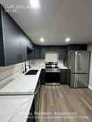 Apartment featuring a modern kitchen with stainless steel appliances and a built-in desk area that opens to a large living room. Two comfortable bedrooms with generous closets and durable LVP flooring throughout. Convenient laundry area with full-sized washer and dryer. A versatile nook near the front door makes a great mudroom or home office space.