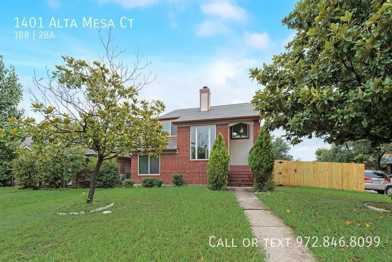 1401 Alta Mesa Ct is a 3 bedroom, 2 bathrooms apartment for rent. It is located in Mesquite. It has apartment amenities including air conditioning, central heat, outdoor space, and in-unit laundry. Cats and dogs are allowed, making it a pet-friendly apartment.