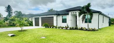 This brand new construction boasts four spacious bedrooms and two full bathrooms, perfect for comfortable living. The house features a stunning pool, serviced regularly for your convenience, and a screened lanai for those relaxing Florida evenings. Inside, you'll find beautiful tile floors throughout, complemented by granite countertops in the kitchen. The kitchen also comes equipped with stainless steel appliances, ready for your culinary adventures. The master suite includes a walk-in closet, dual sinks, and a luxurious bathroom with both a walk-in shower and a bathtub. The property also offers a three-car garage and a paved driveway, providing ample space for your vehicles. Situated on a corner lot, this house enjoys a generous lawn, maintained by included lawn service. This annual rental property is ready for you to experience the best of Florida living in this stunning Cape Coral home!