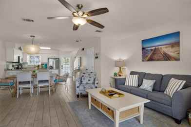 Modern and stylishly decorated 2BR, 2.5BA fully furnished townhome just two blocks from the beach! Enjoy the coastal lifestyle with all utilities and wifi included and a screened-in back porch perfect for relaxing. This recently remodeled home offers two assigned parking spaces, washer and dryer, access to a community pool, and a prime location to local eateries, grocery stores, and the outlet mall. Available month-to-month until March 1. 700 score, proof of income, good rental history, half rental amount as deposit. Don't miss this private beach retreat—schedule a tour today!