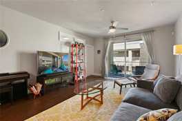 Enjoy upscale living just minutes from downtown Austin in this stylish corner unit with a private covered balcony and pool views. This condo features high-end finishes throughout, including quartz countertops, hardwood floors, a Nest thermostat, and a tankless water heater.