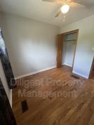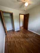 Bedroom 1 - Located on the Upper Level Offering a Large Closet and Bright Window with Curtain and Hardwood Flooring.