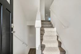 Designer kitchen with quartz countertops, soft-close cabinetry, and 4-door Whirlpool refrigerator. Includes washer, dryer, tankless water heater, ERV furnace, and luxury vinyl plank flooring. Smart thermostat, video doorbell, keyless entry, and lighting.