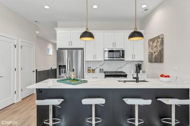 Beautiful new construction 2-bedroom, 2-bath. Thoughtfully designed with elegant finishes throughout, including engineered hardwood floors and a professionally appointed kitchen with custom cabinetry, quartz island, designer backsplash, and integrated appliances. The secluded primary suite features a spa-like bath with an oversized frameless glass shower and designer fixtures. Enjoy ample storage with custom closet organizers and a large entertainment-sized deck overlooking the spacious fenced yard. Convenient location just a 5-minute walk to the Green Line on a quiet block.