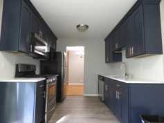 This spacious 3 bedroom, 2 bath, 1 car garage has hardwood floors throughout & no stairs. New kitchen cabinets and counter top were installed recently. Master bedroom has a private bathroom with double sink & walking closet. Washer & Dryer are in the unit. Lots of natural light and also a private patio. Freshly painted. Requirements to rents are no smoking & 1 month security deposit. Must pass a background check