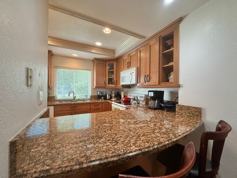 The kitchen comes fully equipped with premium stainless steel appliances—including a refrigerator, microwave, dishwasher, and oven/stove—making cooking and entertaining effortless.